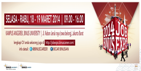 14 Maret 2014Full resolution (550 × 280) ← Previous Next → Binus job expo-tempat menemukan karier baru